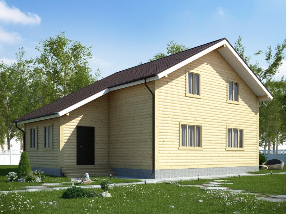 При заказе дома вы можете подобрать подходящий вид кровли: двускатная, четырехскатная и вальмовая. Двухскатная считается наиболее популярной в малометражных домах.