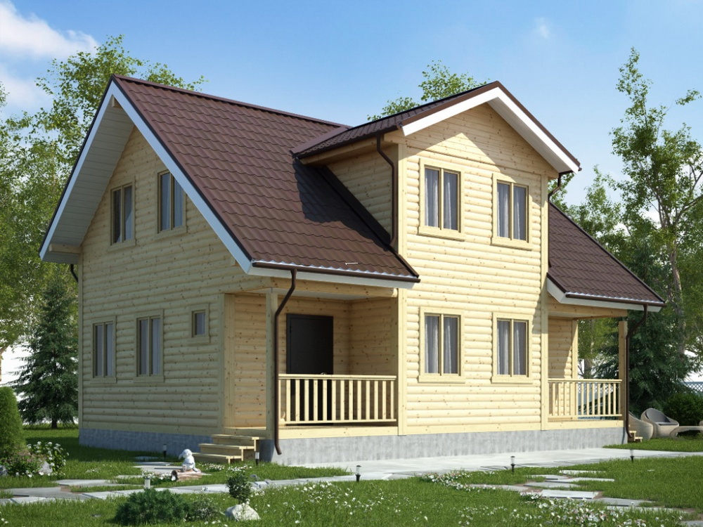 При заказе дома вы можете подобрать подходящий вид кровли: двускатная, четырехскатная и вальмовая. Двухскатная считается наиболее популярной в малометражных домах.