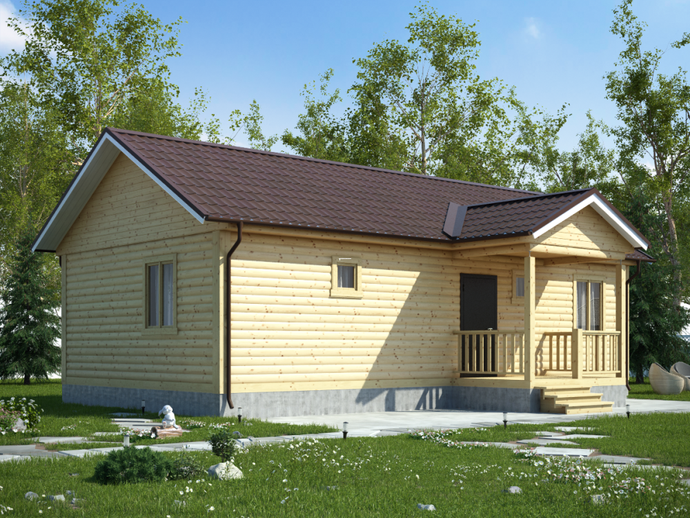 При заказе дома вы можете подобрать подходящий вид кровли: двускатная, четырехскатная и вальмовая. Двухскатная считается наиболее популярной в малометражных домах.